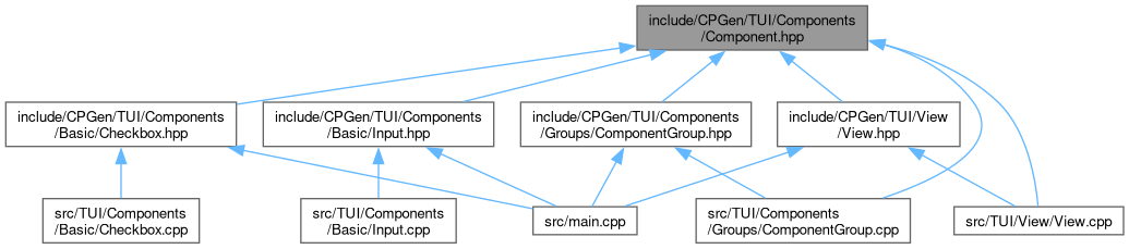 Every interactive element displayed by the TUI (checkboxes, text inputs, groups, …) inherits from Component and implements the three virtual methods: render, handleInput, and optionally setFocused.