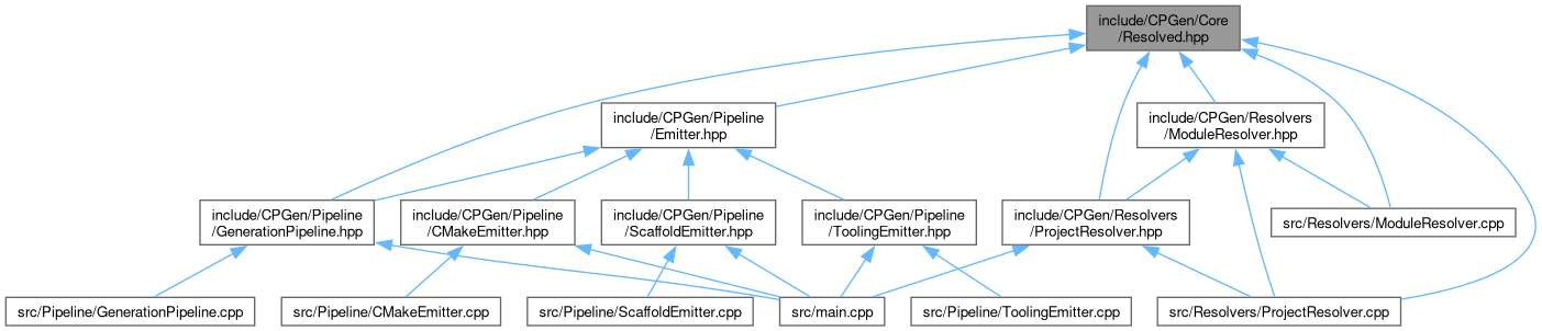 After ProjectResolver::resolve processes a ProjectConfig, every dependency module has been looked up on disk, its FetchContent block parsed, and all CMake injections collected. The resulting ResolvedProject aggregates all of these artefacts and is passed downstream to the generators.
